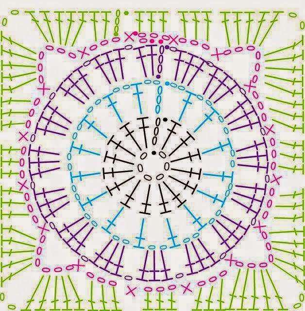 AMOR A PRIMERA VISTA, fue cuando he visto este granny, es un CÍRCULO EN CUADRADO, lo justo par hacer un proyecto que tenia en mente hace tiempo, una pulsera crochet de lo mas moderno , su círculo me recuerda esos relojes grandotes que tanto se llevaban hace años