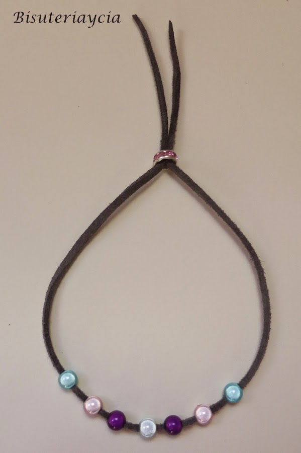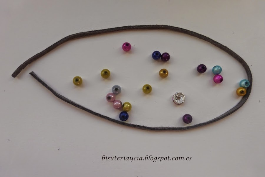 Los materiales antelina del color que mas os guste, bolitas o perlas y un abalorio que nos guste para que nos sirva de cierre.