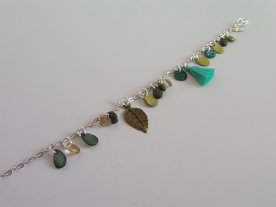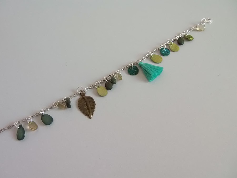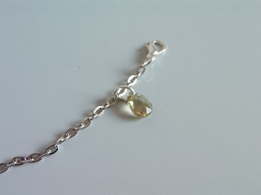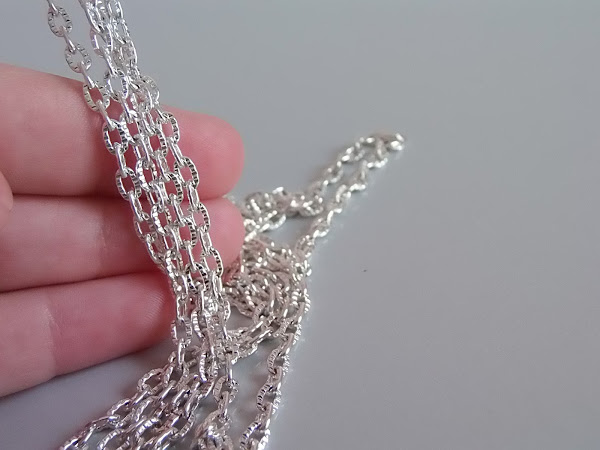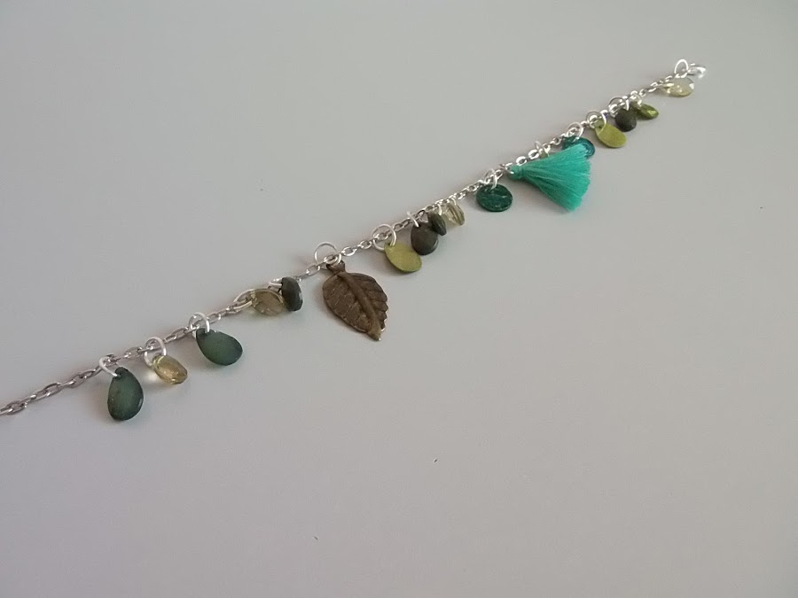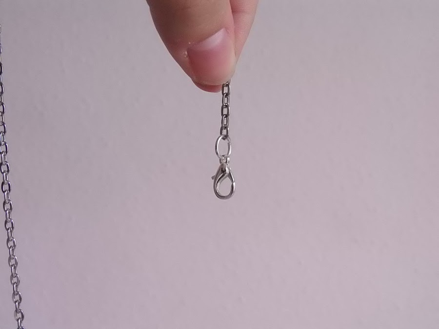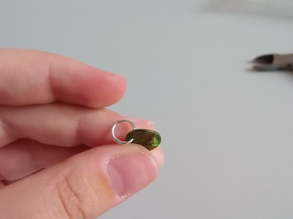Ahora toca ir colocando los abalorios por todo el largo de la cadena,con el mismo proceso.Abrimos una anilla y colocamos el abalorio dentro,y con la misma anilla lo juntamos a los eslabones de la cadena.