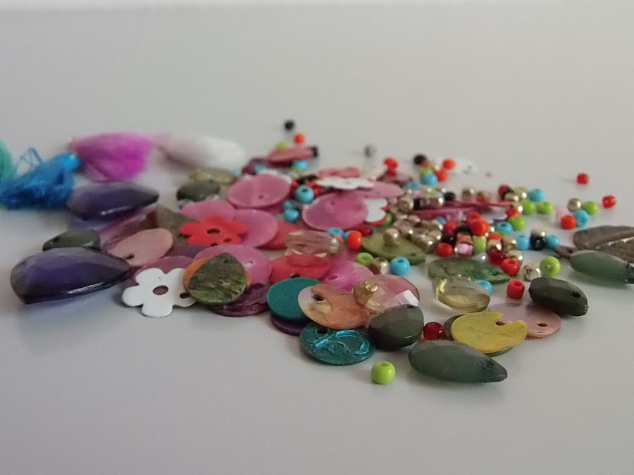 Todos los abalorios que he utilizado menos el plumerito son de un par de pendientes.