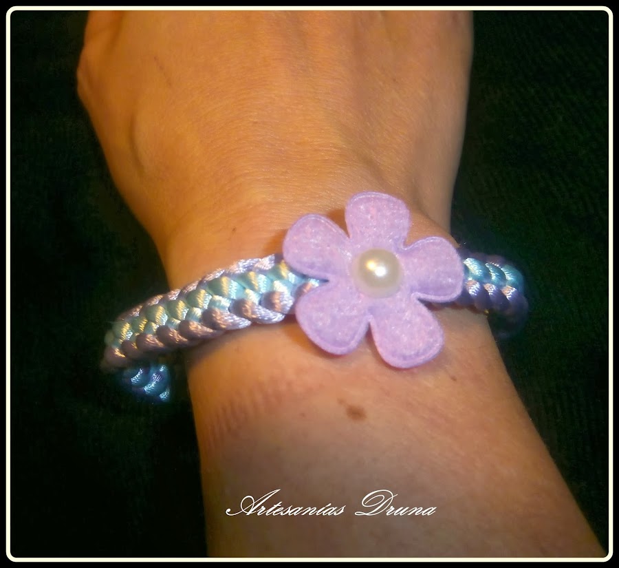 PULSERA TURQUESA Y LILA CON FLOR DE FIELTRO
