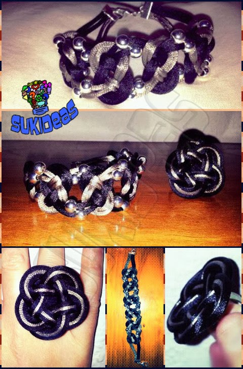 Esta pulsera es de cola de ratón con nudo Josefina y bolitas, anillo a juego de pallete de cinco puntas.