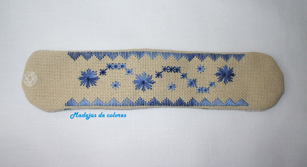 Esta otra en etamina azul marino oscuro y sencillo bordado en grises degradados, aunque no se nota mucho.