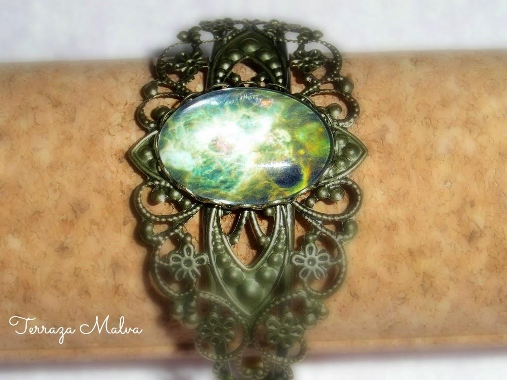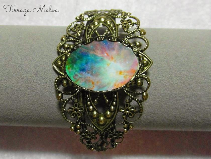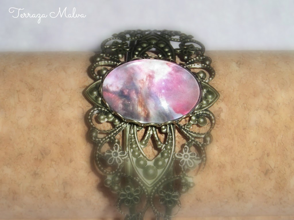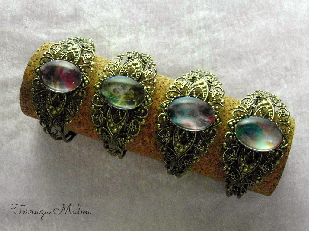 Se me ocurrió que alguna de estas imágenes podría quedar bien como motivo para unas pulseras tipo brazalete con camafeo que tenía pendientes, y este ha sido el resultado.