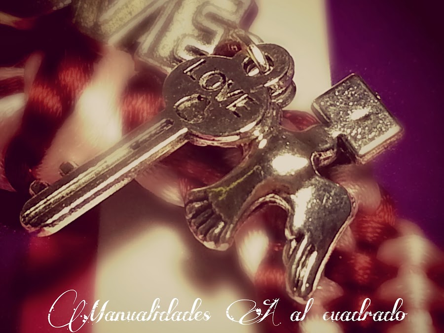 La otra pulsera la he hecho con macramé sencillo y la he adornado con varios charms y el resultado ha quedado bonito y fácil de hacer.
