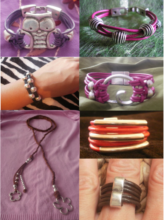 EL COLOR DEL CUERO SE PUEDE ELEGIR ENTRE UN AMPLIO ABANICO DE COLORES Y LOS MOTIVOS Y ABALORIOS SON DE ZAMAK DE PRIMERA CALIDAD, QUE ES UNA ALEACIÓN DE ZINC CON ALUMINIO, MAGNESIO Y COBRE CON TRES BAÑOS DE PLATA.