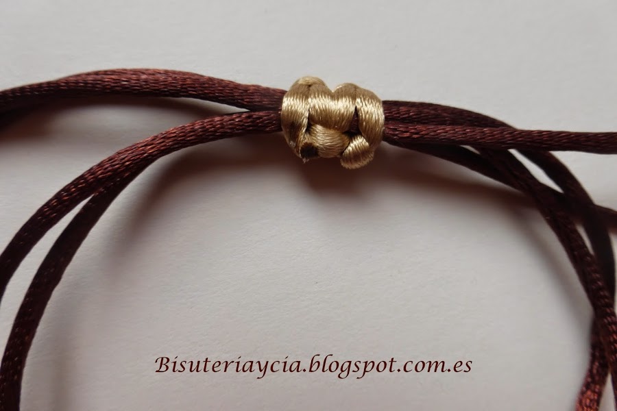 Y para cerrar esta pulsera utilizaremos el nudo plano macramé. Puedes ver como hacer el nudo aquí.
