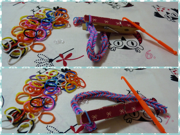 Mientras tanto, el más difícil todavía, también se pueden hacer pulseritas sin telar, sino con dos lápices, dos tenedores, un vaso y con pinzas de tender la ropa. Y oye, pues habrá que probarlo digo yo ¿o no?. La lástima, que no hay tanta variedad de modelos, pero no dejéis de probarlo. Aquí os dejo como se hacen las pulseritas con pinzas de tender la ropa.
