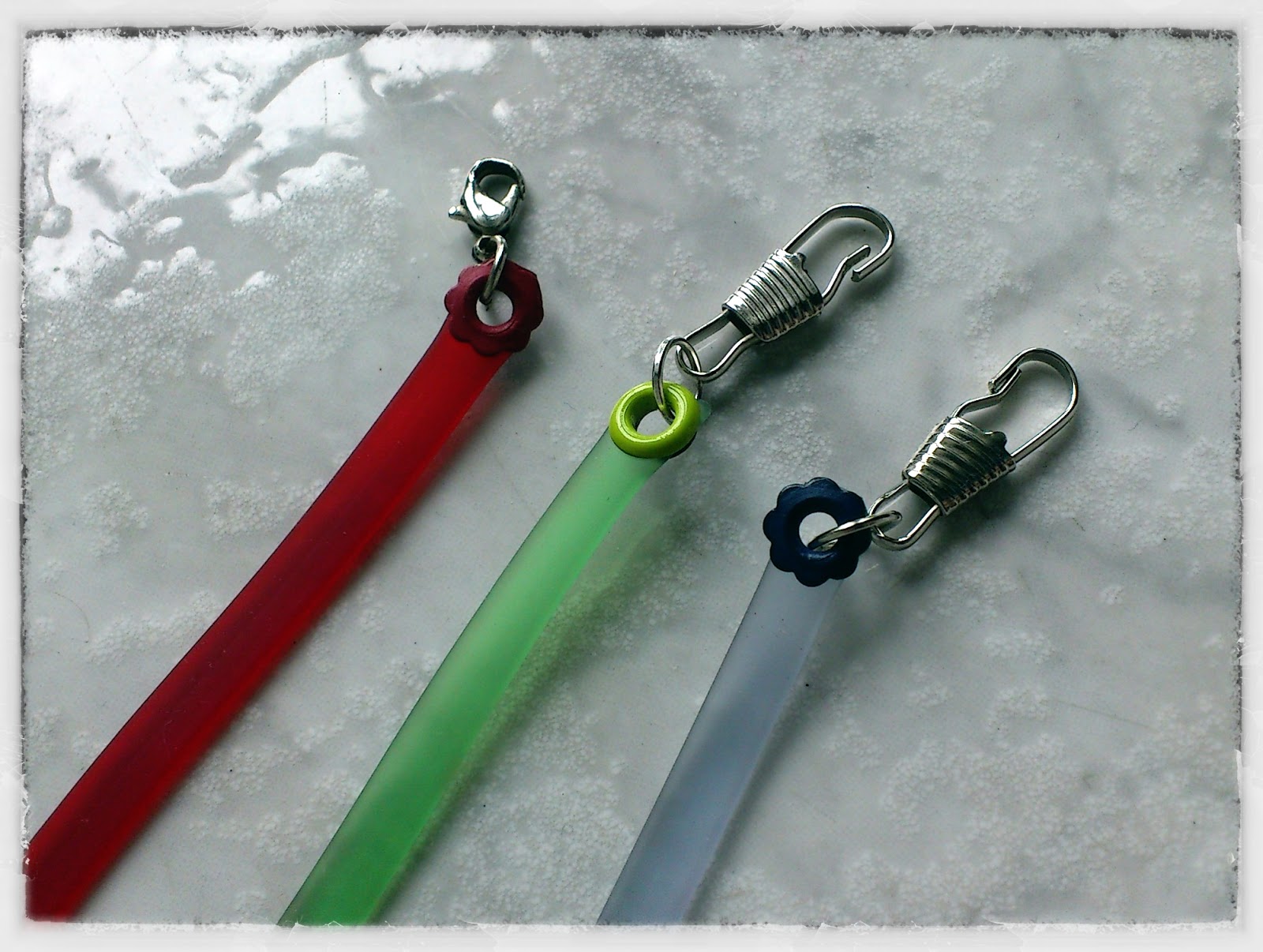 Estas son unas pulseritas que se me ocurrió hacer con unas cintas de colores y unos ojales que utilizo para scrapbooking, como tienen esas formas tan bonitas quedan muy resultonas.