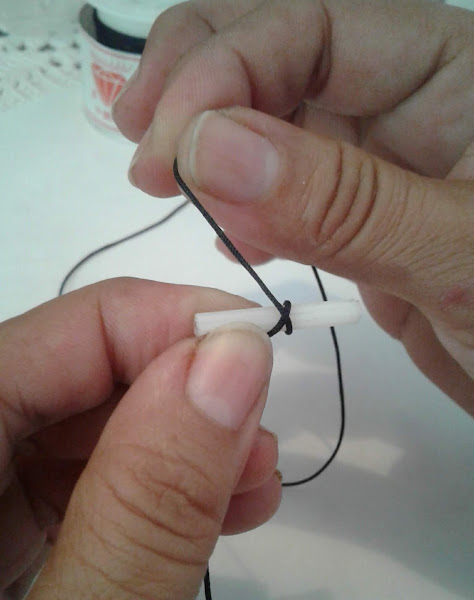 3.- Se da la vuelta al hilo como se muestra en la imagen.