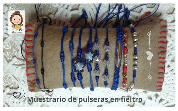 Les muestro algunos modelitos que realicé, junto con mi querida compañerita, mi mamá. Y también me hice con tela de fieltro un muestrario para mis pulseras :).