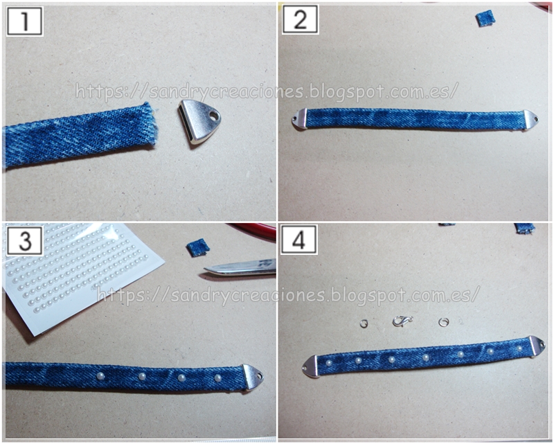 Y de esta manera hemos aprovechado uno de los bajos de un pantalón tejano para hacer estas pulseras que ya están listas para lucir: