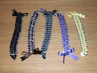 Bisuteria realizada con anillas de latas de refresco, cerveza... pintadas de colores 3 EUROS Anillas rosas, cinta de leopardo gris y cierre de metal Anillas granates con cinta de leopardo verde y cierre de boton