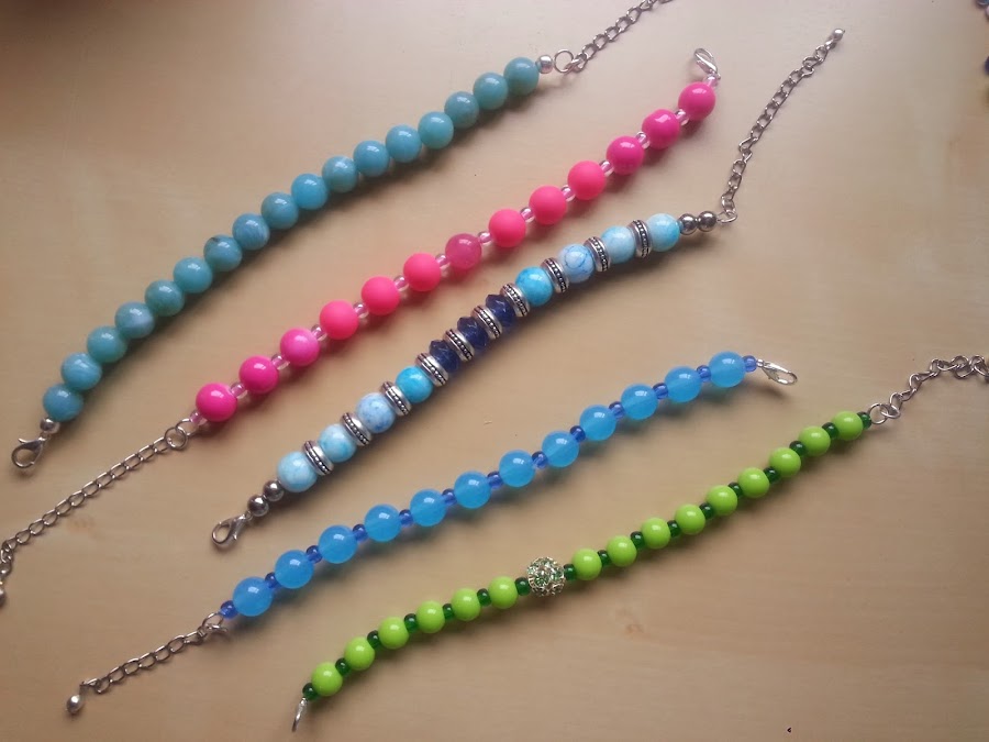 Hola a todos, Hoy os traigo unas sencillas pulseras que se realizan mediante las técnicas que os enseñé en el post "Enfilando abalorios. Técnicas básicas. 1ª parte" que podéis visitar o recordar clicando en el enlace por si no os acordáis o no lo leísteis. Después de un breve descanso por este calor veraniego volvemos con esta práctica entrada que esperamos que os guste. Mientras estoy ...