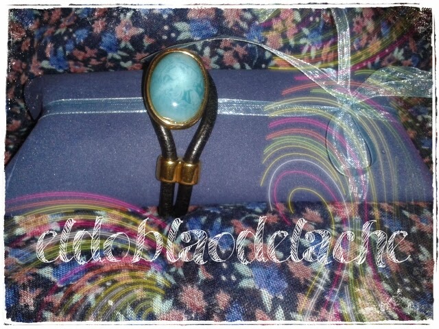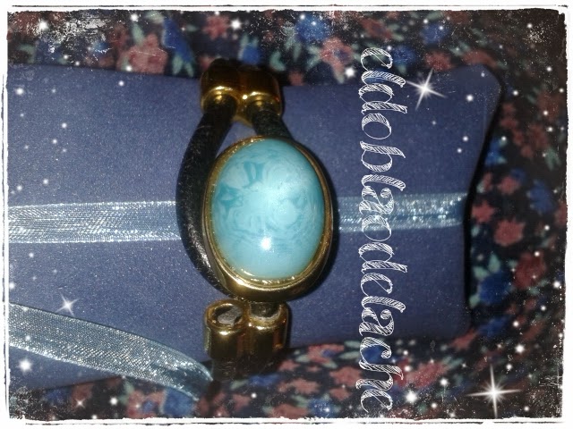 Modelo para chica en cuero negro con entrepiezas y terminación en dorado y piedra verde