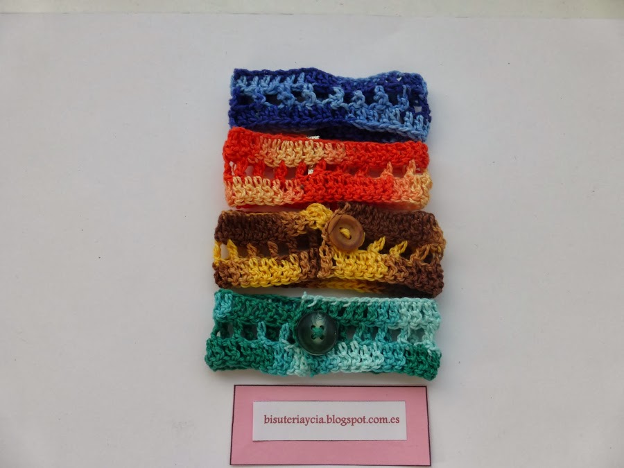 Hoy os traigo una pulsera muy simple, hace muy poco que he empezado a hacer ganchillo y se me ocurrió la idea de hacer estas pulseras.