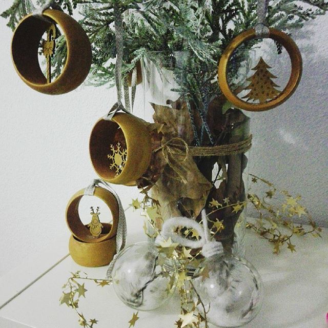 Bueno en esta ocasión ,como no os traigo un DYI muy facilito de hacer para navidad , en este caso son para mi arbol de navidad...lo haremos con pulseras de madera de esas gorditas que pintadas y tuneadas quedan tan xulisimas...este año hemos decidido en casa que no queriamos muchos brillos ya sabeis...luego hay purpurina hasta junio, jijijiji , así que habia comprado estas pulseras de madera para hacer pequeños detalles a mis comensales en la cena navideña , pero me arrepentí y con ellas en la mesa y unos adornitos navideños en dm que tenia para otro proyecto me dejé llevar y lo que vereis es el resultado final de parte de lo que colgará en mi arbol este año....