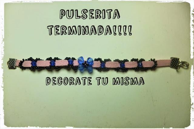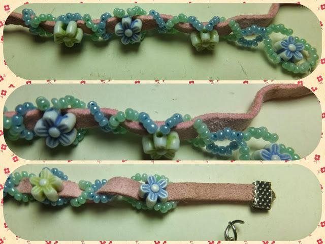 Ahora meteremos la pulsera que hemos trabajado haciendole ziz-zag por los eslabones que se han formado. Fijaros que las zonas donde estan las florecillas tienen que quedar por encima. cuando ya este entera metida le pondremos el otro cierre.