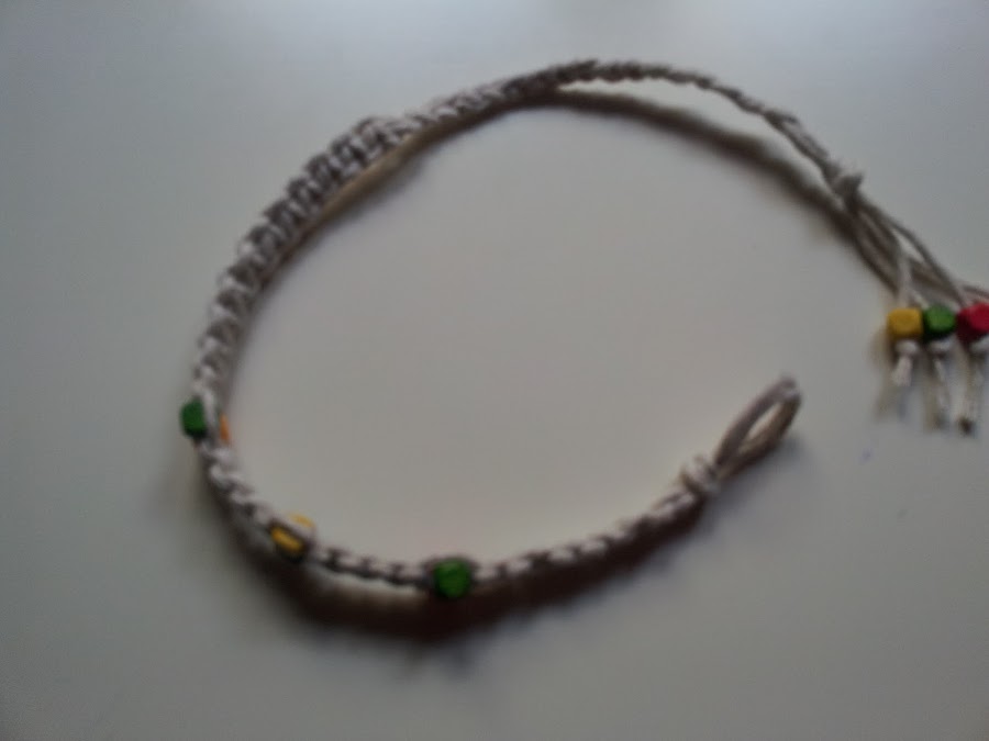 Estas pulseras hippies son muy fáciles de hacer. Este tipo de nudo de macramé se llama nudo plano.