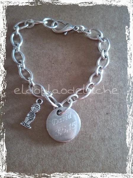 Pulsera con búho y lolita graduada y medallas formando el nombre.