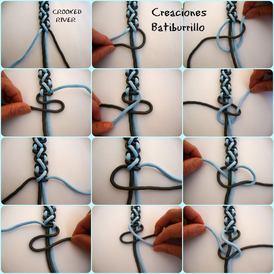 Después, como veis en la secuencia fotográfica, se va alternando un nudo plano a izquierda/rizado a derecha, nudo plano a derecha/rizado a izquierda y se repite de nuevo.