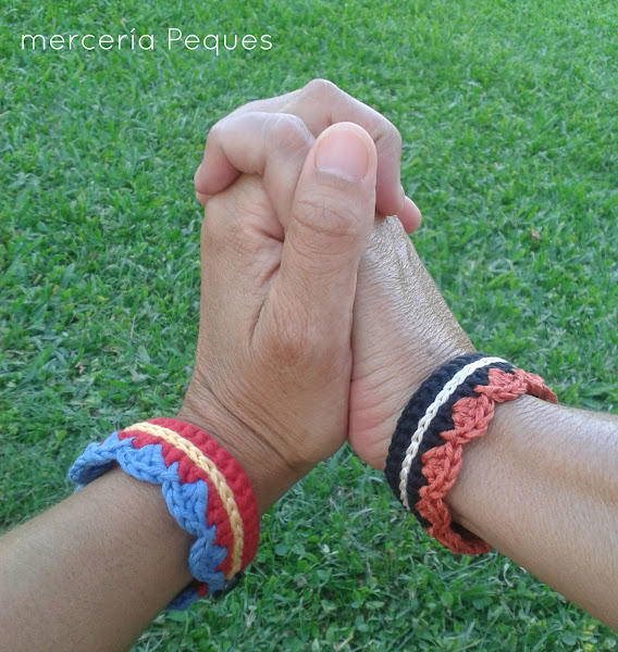 Habéis sido muchos los que me habéis preguntado cómo hacer estas pulseras, sencillas y vistosas y hechas de ganchillo.