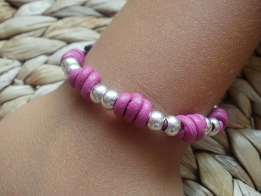 PULSERA Nº22 - PULSERA DE CUERO CON DETALLES EN ZAMAK. AÑADIMOS EL COLOR FUCSIA - 8 EUROS