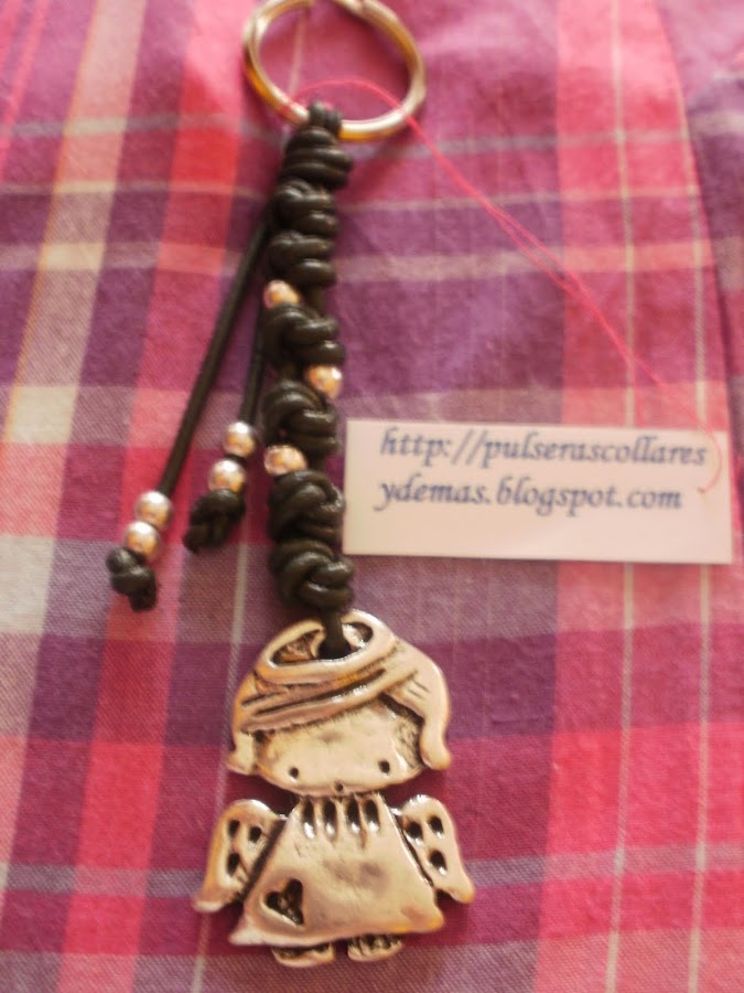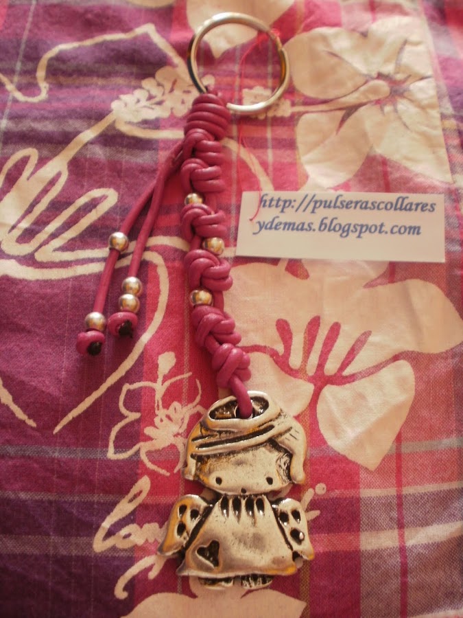 LLAVERO Nº6. - LLAVERO DE CUERO CON NUDOS Y PIEZAS EN ZAMAK. COLOR A ELEGIR.