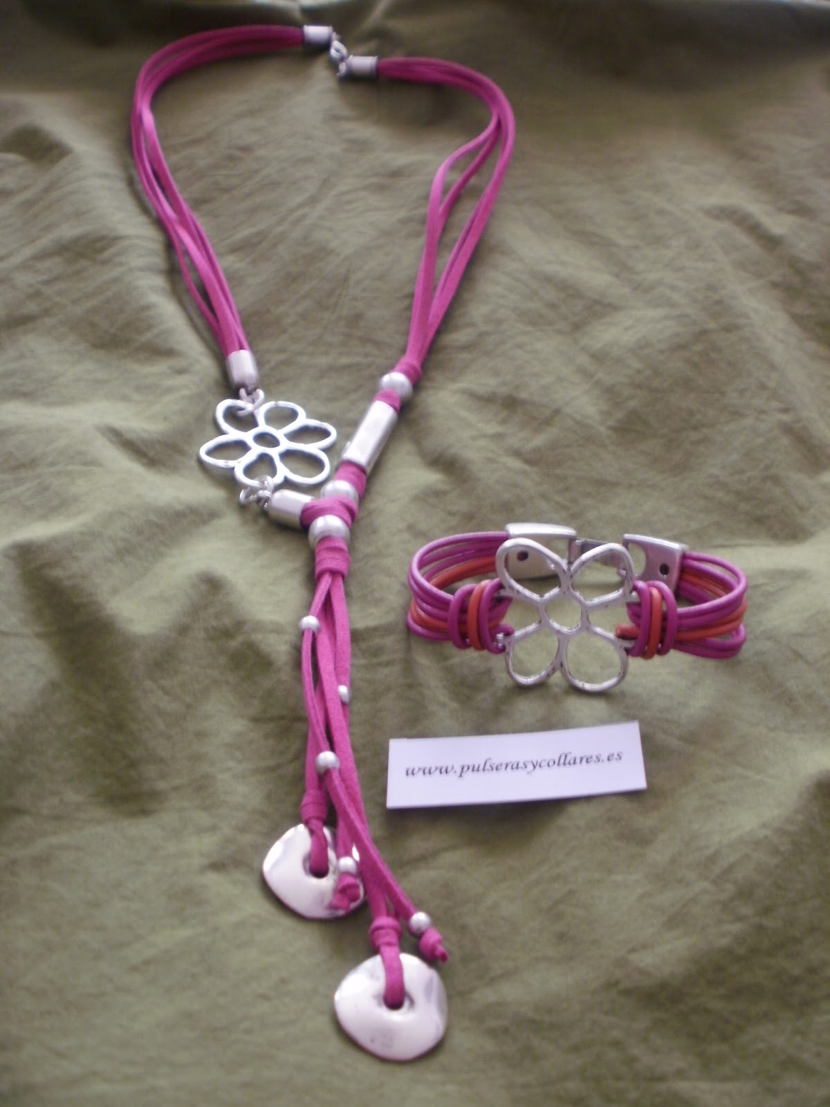 CONJUNTO Nº13 FUCSIA Y NARANJAwww.pulserasycollares.es