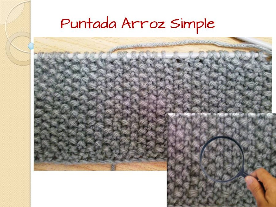 2da vuelta: En el punto que está al derecho tejemos revés y en el punto que está revés, tejemos derecho.