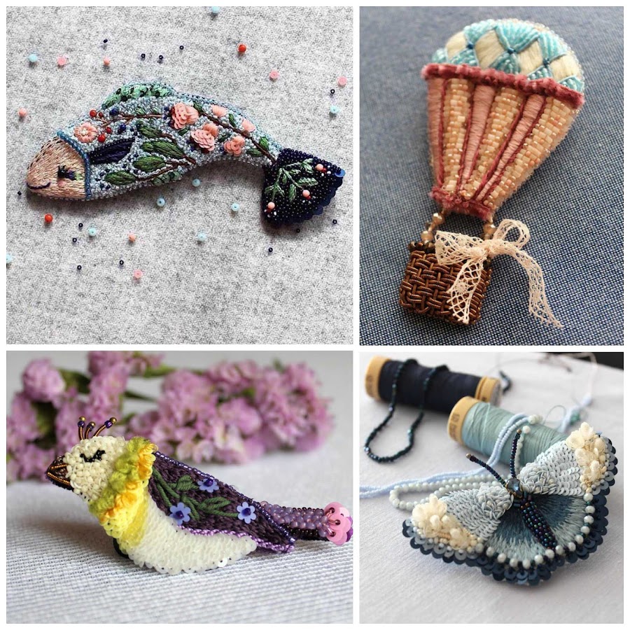 Broches bordados con abalorios y lentejuelas de Julia Boyarskaya.
