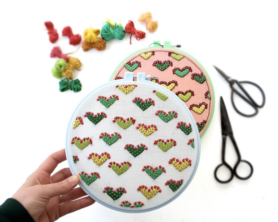 Las chicas de A Beautiful Mess nos regalan el patrón de este divertido bordado de corazones-cactus.