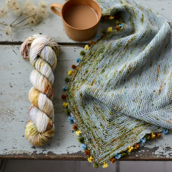 Un patrón estupendo para un primer chal de punto, Tiny Tassels, de LoopKnitlounge.