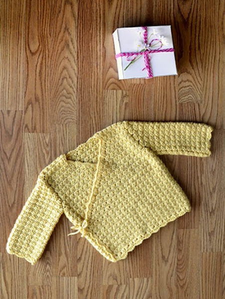 Sencilla chaqueta infantil de ganchillo. El patrón gratuito es de Universal Yarn.