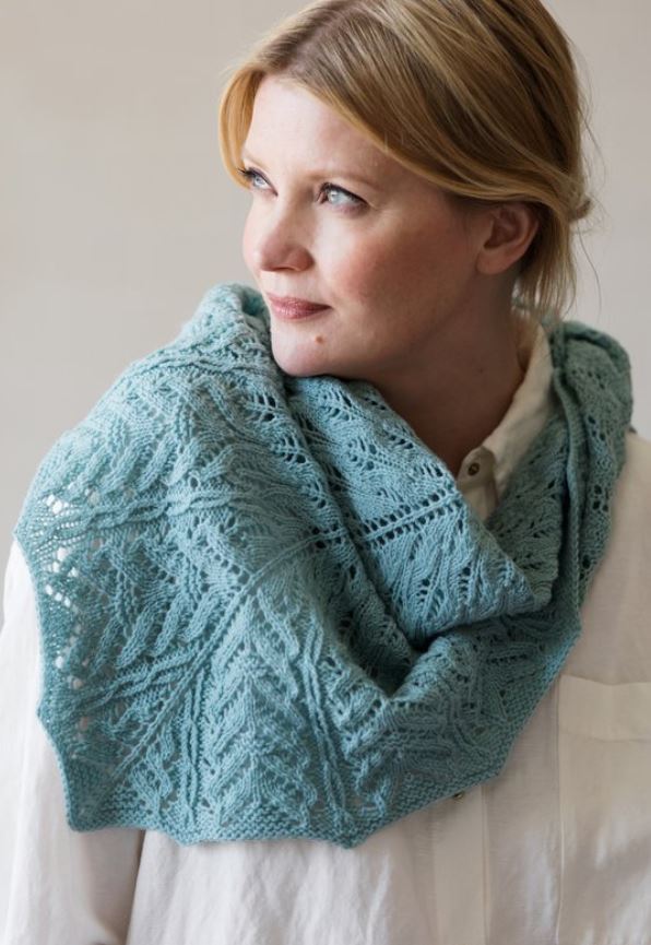 Chal de punto calado de Sisko Sälpäkivi (patrón gratuito aquí).