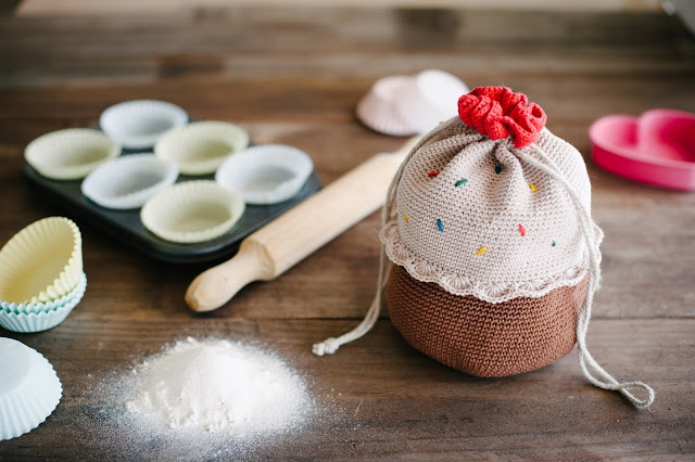 Crochet cupcake purse, free pattern by Ameskeria for DMC.