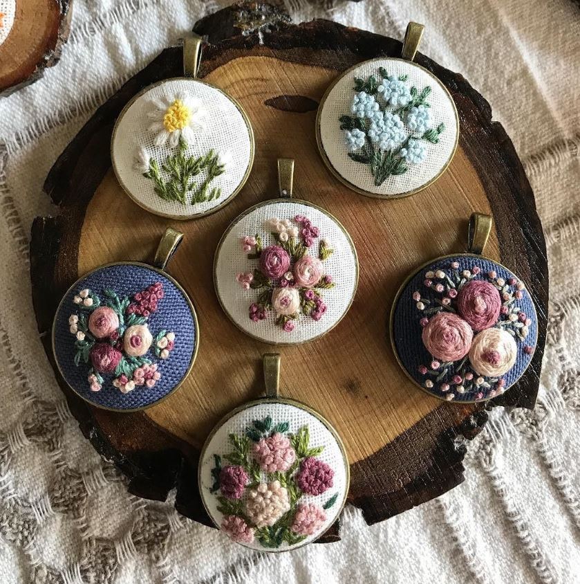 Embroidered pendants by Sonadorrrr.