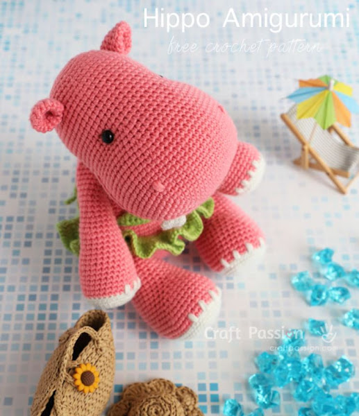 Hippo amigurumi, free pattern by Craft Passion.