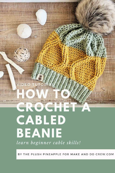 Crochet cable hat pattern, free pattern with photo + video tutorials by Make & Do Crew.