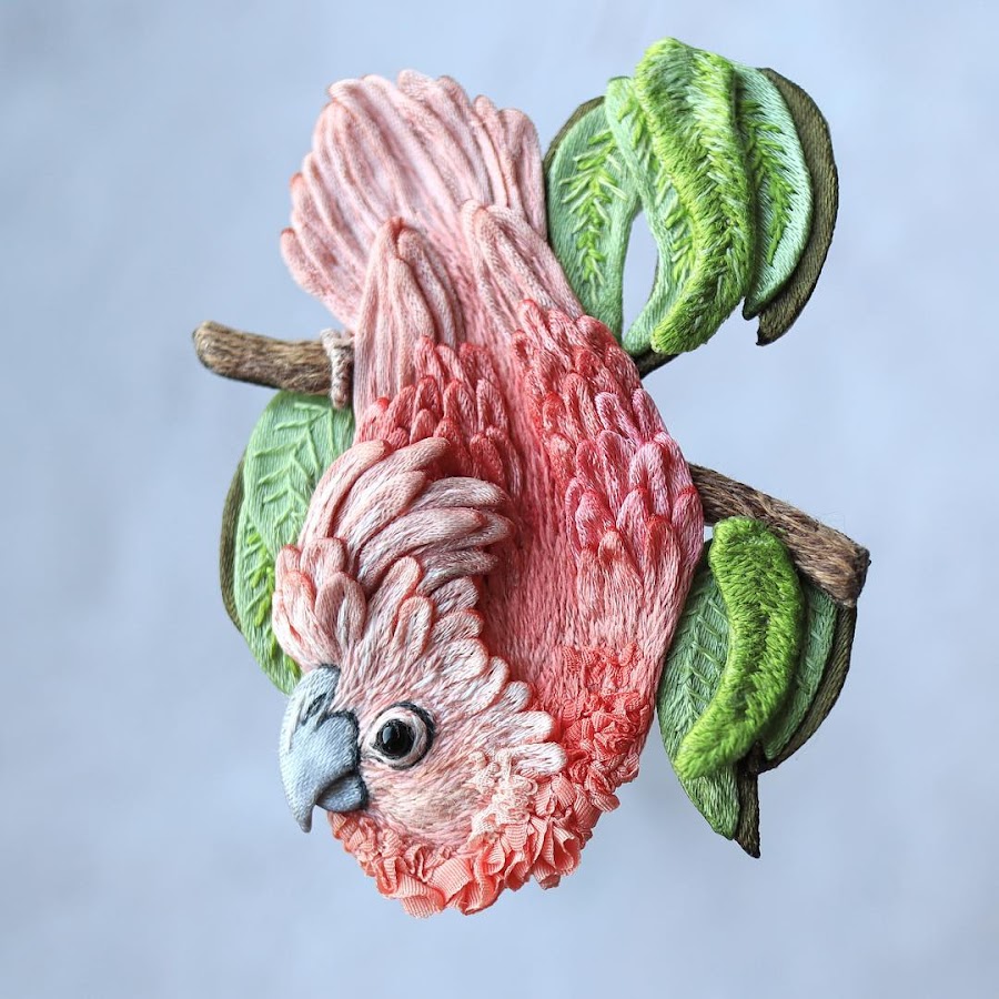 Hand stumpwork embroidery and textile art by Pola Laamanen.