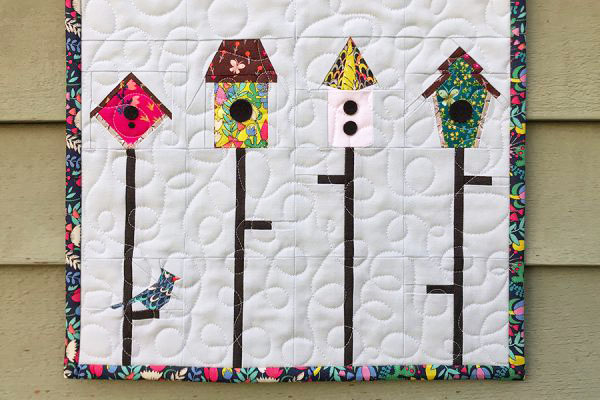 Mini quilt de casitas de pájaros, patrón gratuito y tutorial de We All Sew.