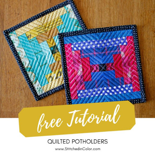 Proyecto fin de semana: agarradores de patchwork, tutorial de Stitched In Color.