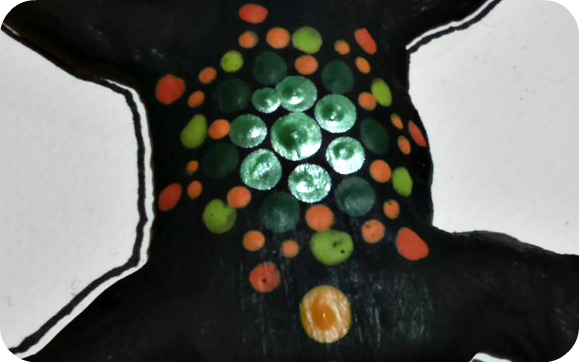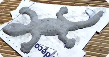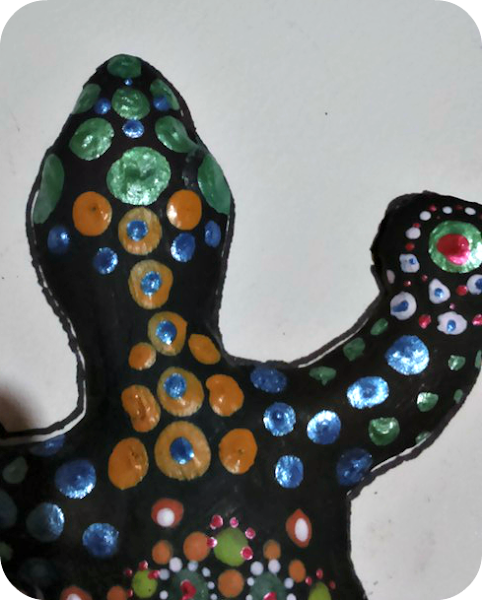 He hecho en papel maché y cartapesta una salamandra y la he decorado con esta técnica .