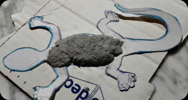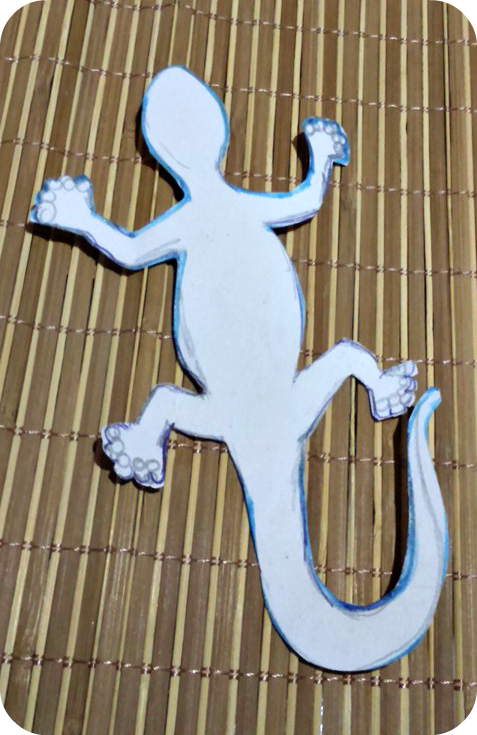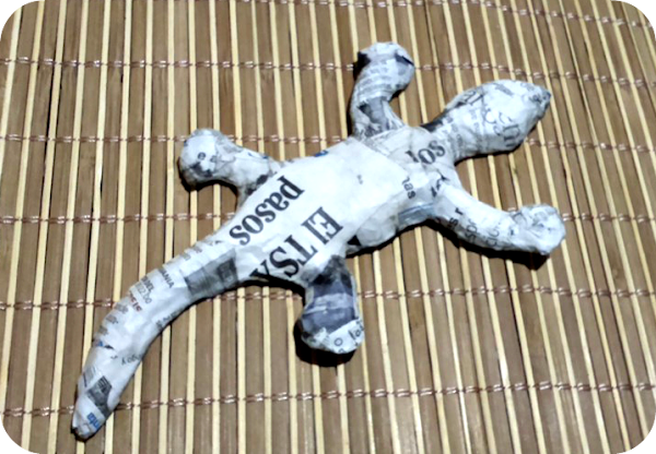 Para empezar he dibujado al bicho en una cartulina , la he recortado y sobre ella empiezo el trabajo con el papier maché , hasta terminar la figura.