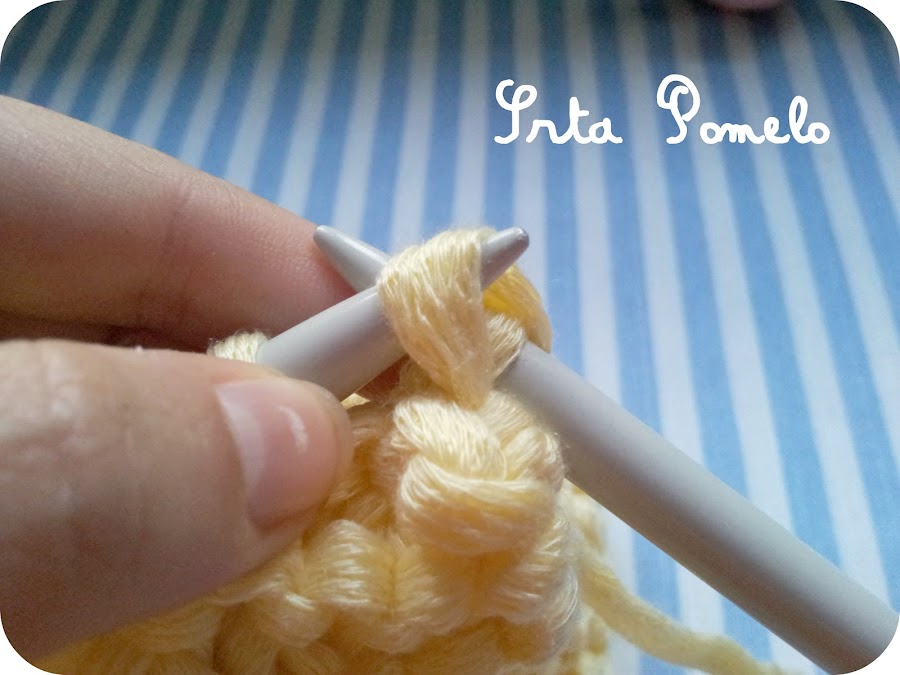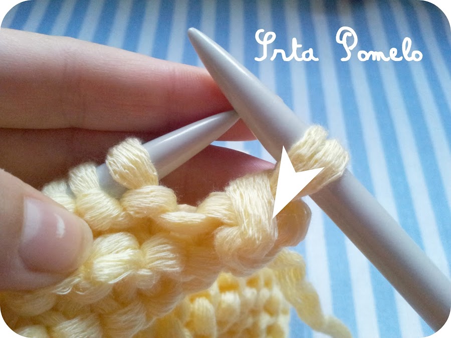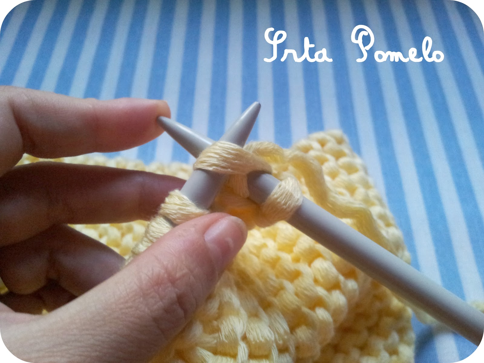 Con la ayuda de la aguja izquierda, cogemos el primer punto y lo pasamos por encima del segundo, sacándolo de la aguja.