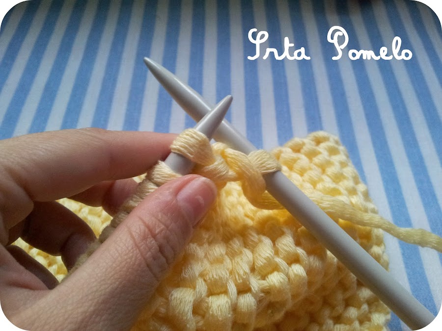 Con la ayuda de la aguja izquierda, cogemos el primer punto y lo pasamos por encima del segundo, sacándolo de la aguja.