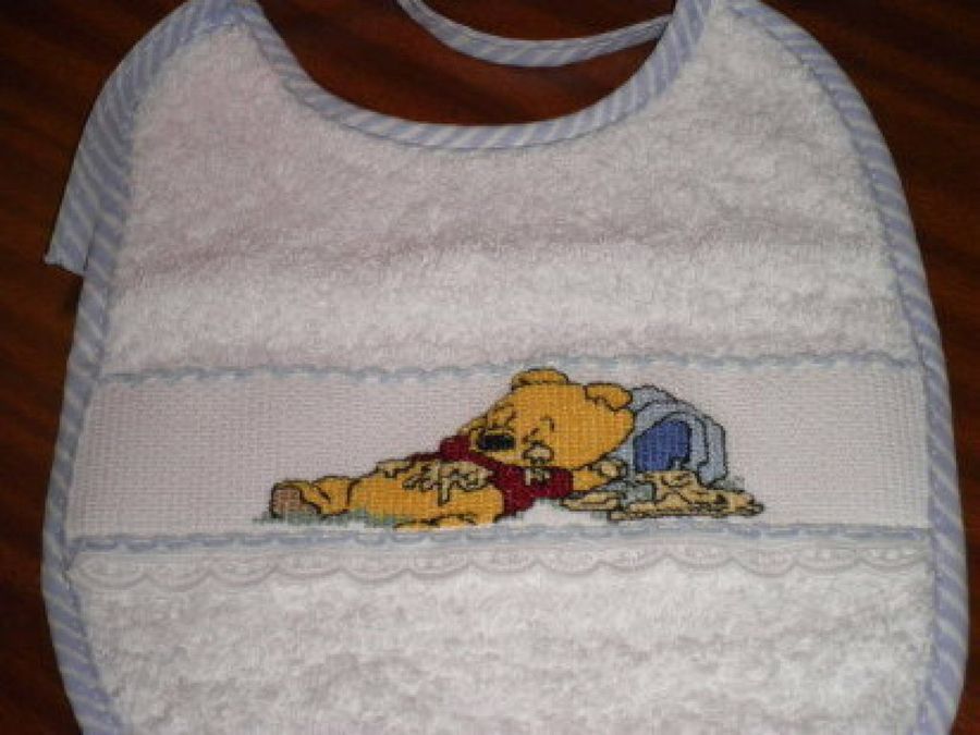 Los baberos también son muy llamados para estos trabajos, ya que se puede bordar en ellos el nombre del bebé, un dibujo infantil...