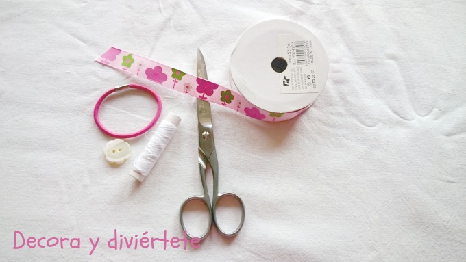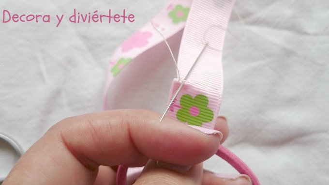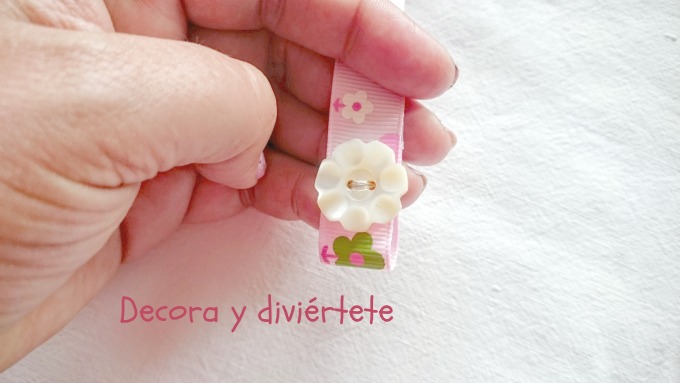 Entonces tienes que coser el botón que hayas escogido procurando coger también la parte de abajo de la cinta que habías doblado ....