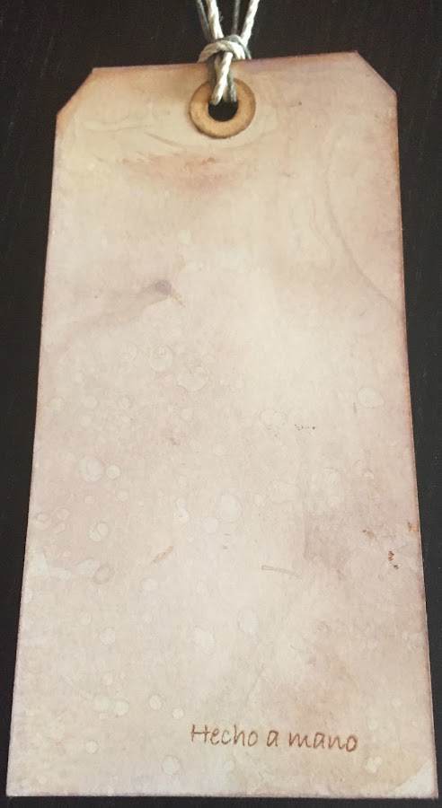 Hoy la entrada es muy cortita y es para enseñaros un punto de libro para un chico. Esta envejecido con distress, un sello de fondo con letras, el sello de libros tambien de fondo y el mismo en el frente tambien pintado con distress. La parte de atras es igual que la delantera, envejecido con distress y le he puesto unos twine en color marrones y verdosos para que sobresalga de la pagina del libro.