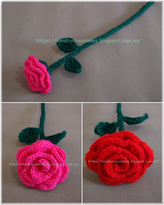 Rosa a crochet (parte superior y hojas) y tricot (tallo)